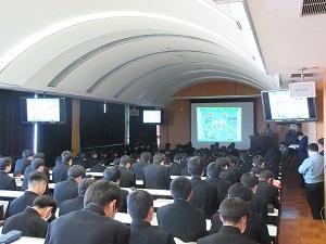 これは、今後社会生活に入る生徒に対し、「安全に注意して仕事をすることの大切さ・重要さ」を日立事業所の現場における安全に対する取り組みの紹介を通して感じることを目的として行われました。また、将来の社会生活に向け、在学中に取り組むべき内容に関しての紹介もあり、大変有意義な内容でした。