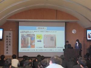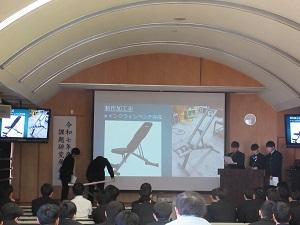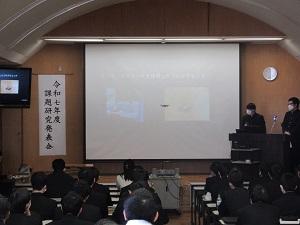 1月15日に情報電子科、1月16日に機械・工業化学科、1月22日に電気科の3年生による課題研究発表会が行われました。いずれの学科の生徒も、3年間学んだ専門的な知識や技術を活かし、日頃から感じている課題について調べ、試行錯誤をしながら研究した結果を披露していました。