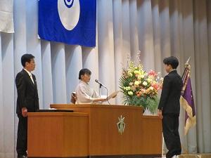 表彰式では、優秀な記録を収めた部活動や技能検定試験合格者への表彰が行われました。