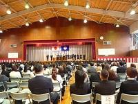本校を離任される先生方をお招きし、離任式を行いました。先生方の、本校に対する思いを私たち全員で聞くことが出来ました。また、その言葉を熱心に聞く生徒達の表情が非常に印象的でした。