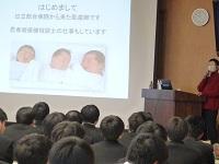 日立市では、平成26年度から高校生への妊娠出産における理解啓発を目的として「ライフプラン教育」を実施しています。この日は、昨年に引き続き医師の太田代紀子先生をお招きし、定時制の生徒を対象に講演をしていただきました。先生の講演は、生徒一人ひとりとコミュニケーションを取りつつ、映像資料と紙の資料を使って説明していただけるのでとてもわかりやすく、生徒達は多くのことを吸収できたと思います。